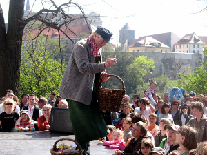 Unsere Großeltern. Sie leben in Leipzig und arbeiten am Theater, genau wie meine Eltern hier in Bautzen, das sich Deutsch-Sorbisches Volkstheater nennt. Mit uns haben Oma und Opa hier in unserer Stadt schon allerhand erlebt. Es gibt einen Termin, da sind die beiden auf alle Fälle bei uns zu Besuch: das ist während des Osterfestes. Es wird hier bei uns in der Lausitz ganz groß begangen und wird von vielen Bräuchen begleitet.