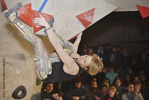 „Es ist wie ein Teamsport, nur besser“, sagt Lucie Poissonnier und strahlt. „Ein Teamsport ohne Gegner vielleicht“, schiebt sie nach. „Oder besser: der Gegner ist man selbst“. Die Französin steht zwischen Matten und Wänden mit bunten Plastikgriffen im BLOC No Limit, einer Boulder-Halle im Osten Leipzigs. Der Staub von Magnesia kitzelt in der Nase, im Hintergrund läuft elektronische Musik, Kinder laufen kreuz und quer durch den Raum und über die dicken Matten, die auf dem Boden liegen. Es ist Boulder-Wettkampf, die Leipziger Station des Ostblock-Cups, bei dem Männer und Frauen in unterschiedlichen Städten im Osten Deutschlands antreten.