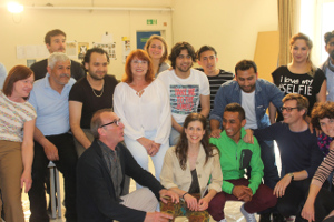 Bevor die Probe beginnt, gibt es Musik, die auch im gesamten Stück eine wichtige Rolle spielen wird. Ein traditionelles syrisches Duo mit orientalischen Zupfinstrumenten spielt gemeinsam mit einem marokkanischen MC und einem deutschen Kontrabassisten. Genau das sei es, was Regisseur Jörg Wesemüller anstrebe: „Verschiedene kulturelle Einflüsse sollen sich auf der Bühne begegnen und die neue Situation in Deutschland abbilden – die Veränderungen in der Gesellschaft, die tollen neuen Impulse, aber auch die Herausforderungen. Der Grundgedanke des Stücks ist: Wie gehen wir in Deutschland mit Geflüchteten um? Was ist schwierig, toll oder witzig? Und vor allem: Was sind das für Menschen?“ Der Regisseur erzählt, dass das Team des Theaterprojekts in den vergangenen 14 Tagen fast nur geredet und sich gegenseitig kennengelernt habe. Die Vertrautheit zwischen den Darstellenden ist spürbar. [...]