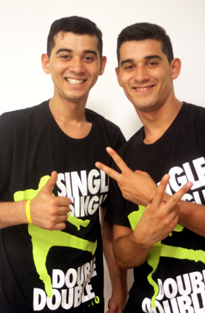 Bobi hat schon mit dem Kurs begonnen, aus den Boxen tönen südamerikanische Klänge, mal verspielt, mal mit treibenden Bässen unterlegt. Der schlanke und athletische 24-Jährige tanzt gerade einen Mambo-Schritt mit beeindruckendem Hüftschwung, und die Kursteilnehmerinnen tun es ihm nach. Dann stößt Ilian dazu, er kommt direkt aus einem anderen Zumba-Kurs. Er wird zwischen zwei Liedern herzlich begrüßt, es gibt Umarmungen und Küsschen. Eine Teilnehmerin wird von ihrem Mann und ihrer kleinen Tochter begleitet, die Ilian fröhlich in die Arme läuft. Die Atmosphäre ist herzlich und vertraut. Viele der Teilnehmerinnen tragen „Twins“-T-Shirts. Schnell wird klar, Bobi und Ilian sind hier mehr als herkömmliche Zumba-Trainer.