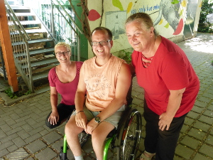 Als ich mich mit Steven Wallner sowie mit Dr. Marion Michel und Anja Seidel, beide vom Verein Leben mit Handicaps, im Soziokulturellen Zentrum „Die Villa“ verabrede, kommt es zu Beginn zu einer kurzen, aber vielsagenden Begebenheit. Eine der beiden Sitzecken im Café der Villa befindet sich auf einem Podest, die gegenüberliegende Sitzecke liegt ebenerdig. Jene auf dem Podest wirkt abgeschirmt und gemütlicher, also steuern wir wie selbstverständlich darauf zu. Nur Steven in seinem Rollstuhl wendet sich sofort zur anderen Ecke, sieht uns fragend hinterher. Na klar, sorry, entfährt es uns drei anderen wie Ertappte mit Barrieren im Kopf… Begegnungen mit Menschen mit Behinderungen verlangen immer wieder besondere Aufmerksamkeit.