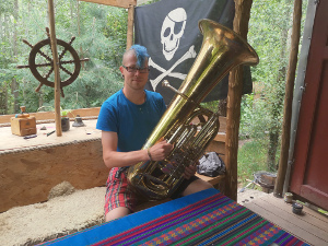 Die Basstuba ist der Blickfang auf der Veranda von Funny. Das Blasinstrument ist nicht einfach nur Zier, der 32-Jährige spielt in seiner Freizeit in einer Bläsercombo und ist immer dabei, wenn Konzerte oder andere Veranstaltungen innerhalb und außerhalb des Wagengeländes organisiert werden. Hinter der Veranda Marke Eigenbau schließt sich der Wohnwagen an, es wirkt fast wie eine Gartenlaube. Nur dass Funny hier ständig wohnt – wie rund 40 weitere Nutzerinnen und Nutzer sowie elf Kinder auf dem Wagenplatz an der Klingerstraße. Eins der Kinder ist Funnys Sohn, der in diesem September eingeschult wird. Für ihn gibt es einen eigenen Raum als Kinderzimmer, der sich ebenfalls der Veranda anschließt. Die Eltern leben getrennt, und so ist der Sohn mal beim Vater, mal bei der Mutter, die in einer „normalen“ Wohnung lebt.