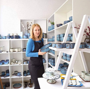 Juliane Kruse: Ich komme ursprünglich von der Ostsee und bin Keramikerin. Von 2007 bis 2010 absolvierte ich in einer Töpferei in der Nähe von Rostock meine Ausbildung. Seit 2010 arbeite ich als selbstständige Töpferin. Jede Tasse, jedes Keramikstück in meinem Laden ist von mir entworfen und gedreht.