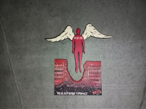Im Laufe der Zeit haben die Straßenkünstler erkannt, dass ihre Aufgabe nun darin besteht, die Ukrainer psychologisch zu unterstützen, indem sie über ihrer Kunst die Themen des Krieges reflektieren, Ausländer über den Krieg informieren und die Armee unterstützen. Innerhalb weniger Monate nach Ausbruch des Krieges waren die Straßen voll mit Graffiti, Aufklebern und Plakaten zum Thema Krieg. In verschiedenen Städten wurden große Graffitis zur Unterstützung des Regiments Asow und der belagerten Städte gemalt. [...]