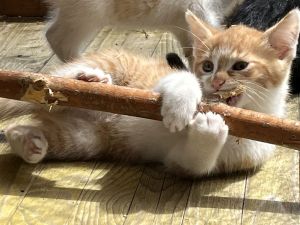 Im Holzhaus befindet sich ein Quarantäne-Zimmer mit Kätzchen, die noch zu klein zum Impfen sind – zwei Schwarze und zwei Getigerte, die in einem Gewerbegebiet gefunden wurden. „Niemand wusste, was mit der Mama ist“, erzählt Elke Jäger, „wir haben sie aufgenommen, weil wir in dem Moment noch den Platz hatten. Momentan geht aber gar nichts mehr.“ Die Anzahl der beherbergten Vierbeiner gehe gegenwärtig auf die 50 zu. Das habe etwas mit den vielen Kitten, so die Bezeichnung für Katzenkinder, zu tun, die der Verein gerade beherbergt. In den zwei großen Räumen sind vorwiegend ältere Katzen. Sie können jederzeit durch die Katzenklappen in das sicher umzäunte Freigehege. [...]
