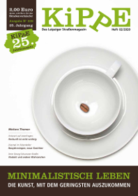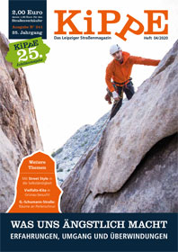 Dass unsere Verkäufer/innen die KiPPE nicht wie gewohnt im Stadtgebiet verkaufen können, bedeutet für viele, die ohnehin in Armut leben, finanzielle Einbußen, die wir gern durch Spenden kompensieren möchten. Deshalb stellen wir Ihnen die KiPPE-April-Ausgabe hier als PDF-Download zur Verfügung und bitten im Gegenzug darum, den üblichen Preis von 2 Euro oder gern auch etwas mehr zu spenden. Der Erlös kommt dann unseren Verkäufer/innen zugute. Vielen Dank für Ihre Unterstützung!