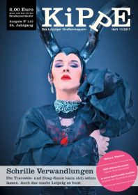 KiPPE N° 212 Titelthema: Schrille Verwandlungen Die Travestie- und Drag-Szene kann sich sehen lassen. Auch das macht Leipzig so bunt. mehr Falsche Töne erlaubt mehr Vergiss mein nicht mehr Außerdem halten wir in dieser Ausgabe u. a. folgende Themen für Sie bereit: Weiterlesen